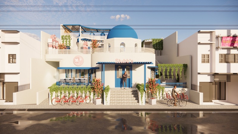 "The Luxury Restaurant Project, located in Ponorogo, has a Santorini-style design concept. Consists of 1 basement, 3 floors and 1 mezzanine. The structure design has been completed by our team, using the main structure of reinforced concrete, and canopy using steel structures."