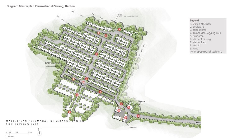 "Project Design Masterplan Residences in Serang, designed in such a proper and functional spatial layout. Masterplan design by our partner architect team, as well as the calculation of the cost unit residence is also for the initial reference for developers in the project budget plan. "