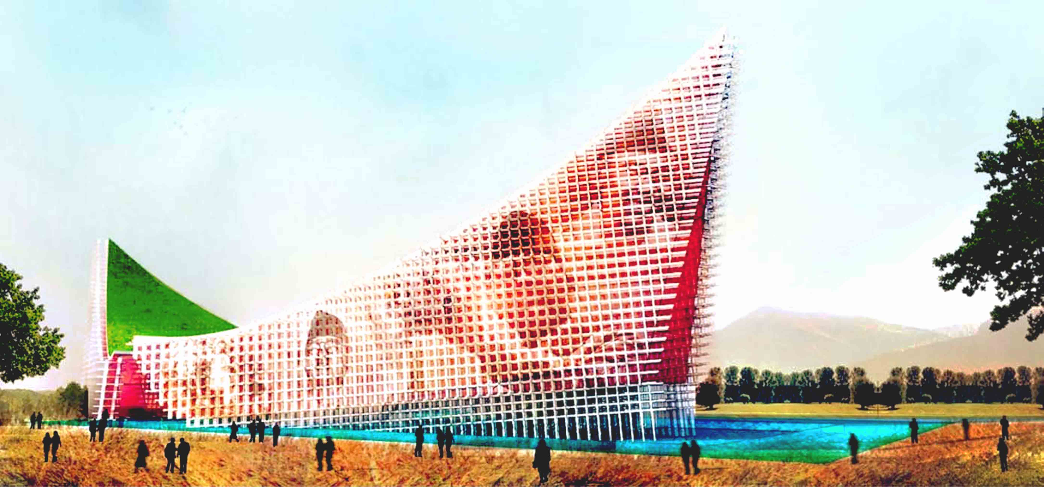 "The museum project that is designed in such a way, reflects the uniqueness of the area. Facade / outer walls use glass wall curtain with architectural motifs nuanced heroism. In it there are also supporting buildings, such as: Visitor Center, Restaurant, Lodging, Plaza, Reflective Pool, etc. "