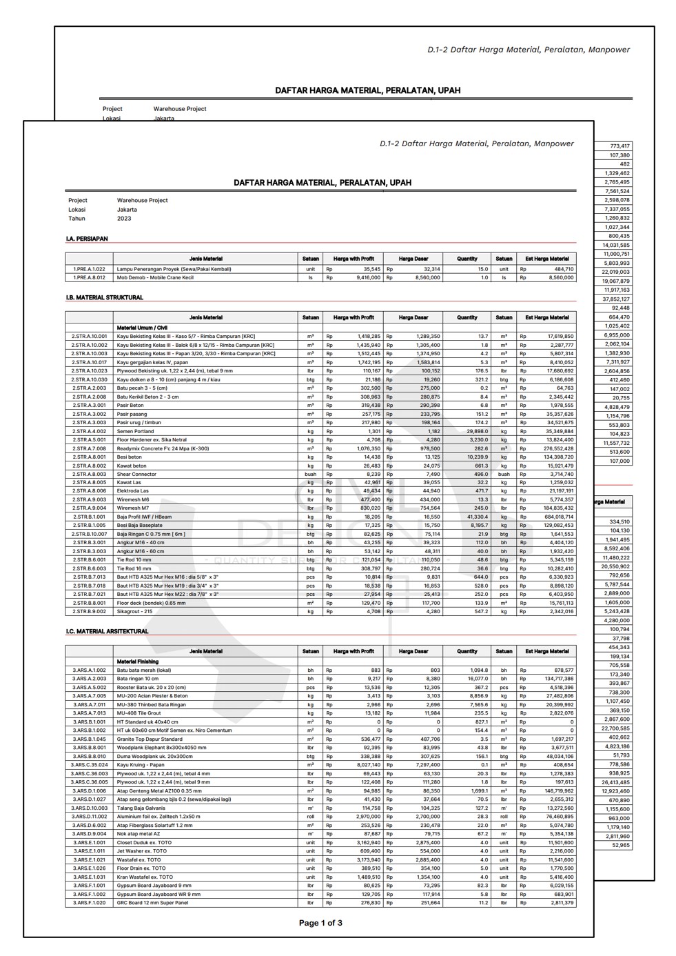 Civil Design Indonesia has maximized computer software in price databases and quantity take off calculations, both structure, architectural and mechanical electrical plumbing work scopes, so clients don't need to worry about work deadlines